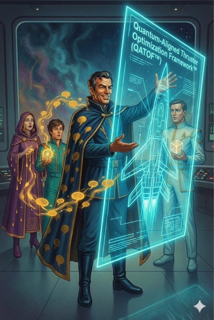 It could even integrate into an entry-tier version of the Quantum-Aligned Thruster Optimization Framework™.”